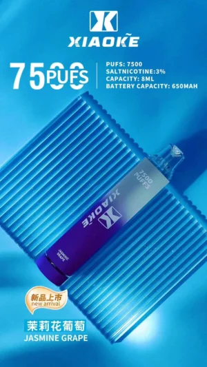 XIAOKE 梟客 7500 Puffs 一次性電子煙,全新 炫彩發光外觀,夜間使用更有氛圍感。單支可抽 約 7500口,內建 可充電電池(Type-C 接口),搭配 Mesh 網狀霧化芯,霧量細膩穩定。免加油免換芯,操作簡單,多種口味選擇。
